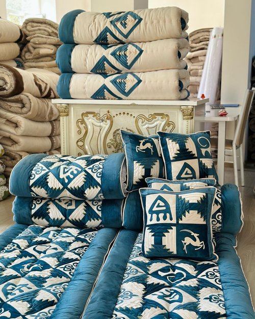 Особый пласт заказчиков — это соотечественники, живущие за границей. Находясь вдали от родины, они начинают острее чувствовать связь со своими корнями. Перизат отмечает интересную тенденцию: пик таких международных заказов всегда приходится на весну, накануне Нооруза. Люди, обосновавшиеся в других странах, стремятся создать в своих зарубежных квартирах так называемый «кыргызский уголок» — заказывают шторы со вставками из национальных узоров, красивые тошоки и предметы декора, которые напоминают им о доме.