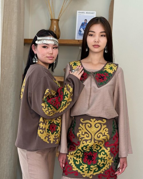 «Однажды к нам обратились девочки-лучницы, которые выступают в Америке, — рассказывает Перизат. — Они попросили создать что-то такое, что подчеркивало бы их принадлежность к кыргызскому народу, но при этом креативное, чтобы все вокруг буквально ахнули. Часто заказывают наряды наши танцовщицы для выступлений в Германии, есть клиенты из Южной Кореи. Недавно были в Милане».