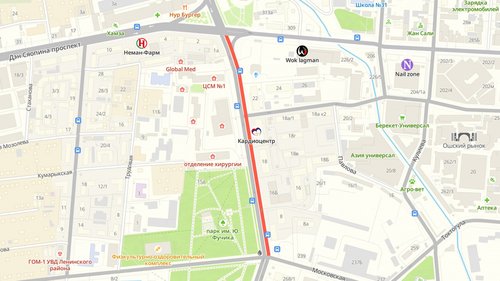 Движение автотранспорта временно ограничено на участке от улицы Московской до проспекта Чуй (восточная сторона улицы Фучика).