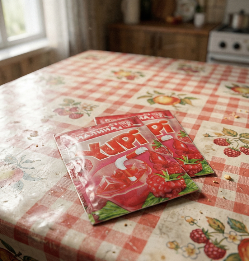 На самом деле, Yupi редко кто пил, растворяя в воде — это было долго и пресно. Главный ритуал, который помнят все — есть порошок всухую. Ты покупал пакетик, надрывал уголок и высыпал порошок прямо на ладонь. Мы слизывали его прямо с руки. Сначала был сильный, приторно-сладкий вкус, а потом — мощная кислинка, от которой сводило скулы. Вся школа ходила с ярко-оранжевыми, желтыми или красными от порошка языками.