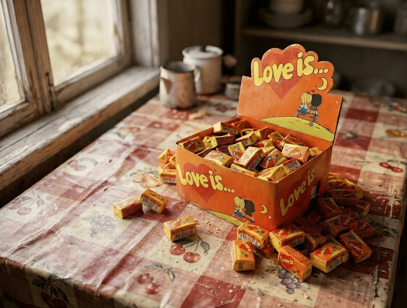 Если спросить любого, кто рос в Кыргызстане в 90-е и начале 2000-х, какой вкус у жвачки Love Is…, мало кто вспомнит его. Он был стандартным, приторно-сладким. Но этот продукт покупали не ради вкуса. Его покупали ради вкладышей. Love Is… несли с собой легкую, наивную, но очень личную романтику. Для школьников тех времен эта жвачка была социальным ритуалом. Вкладыши бережно хранились в специальных коробочках или альбомах, их также дарили друг другу при признаниях в любви.