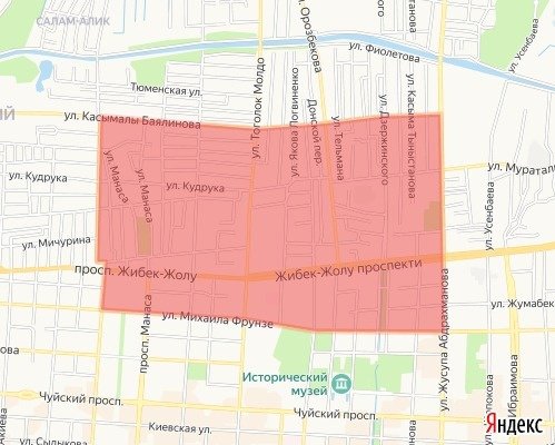 - улица Турусбекова — улица Баялинова — улица Абдрахманова.